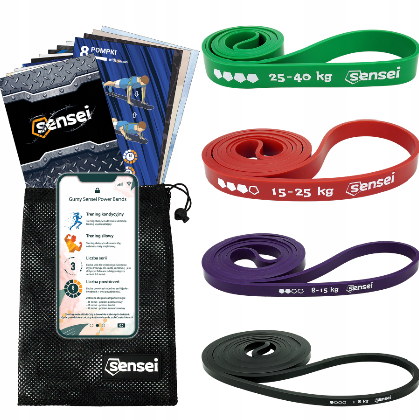 Gumy do ćwiczeń polskiej marki Sensei. Idealne do rozgrzewki, treningu siłowego, podciągania oraz crossfitu. Najwyższa jakość produktu zweryfikowana dwoma tysiącami opinii i ponad dwudziestoma tysiącami sprzedanych kompletów.